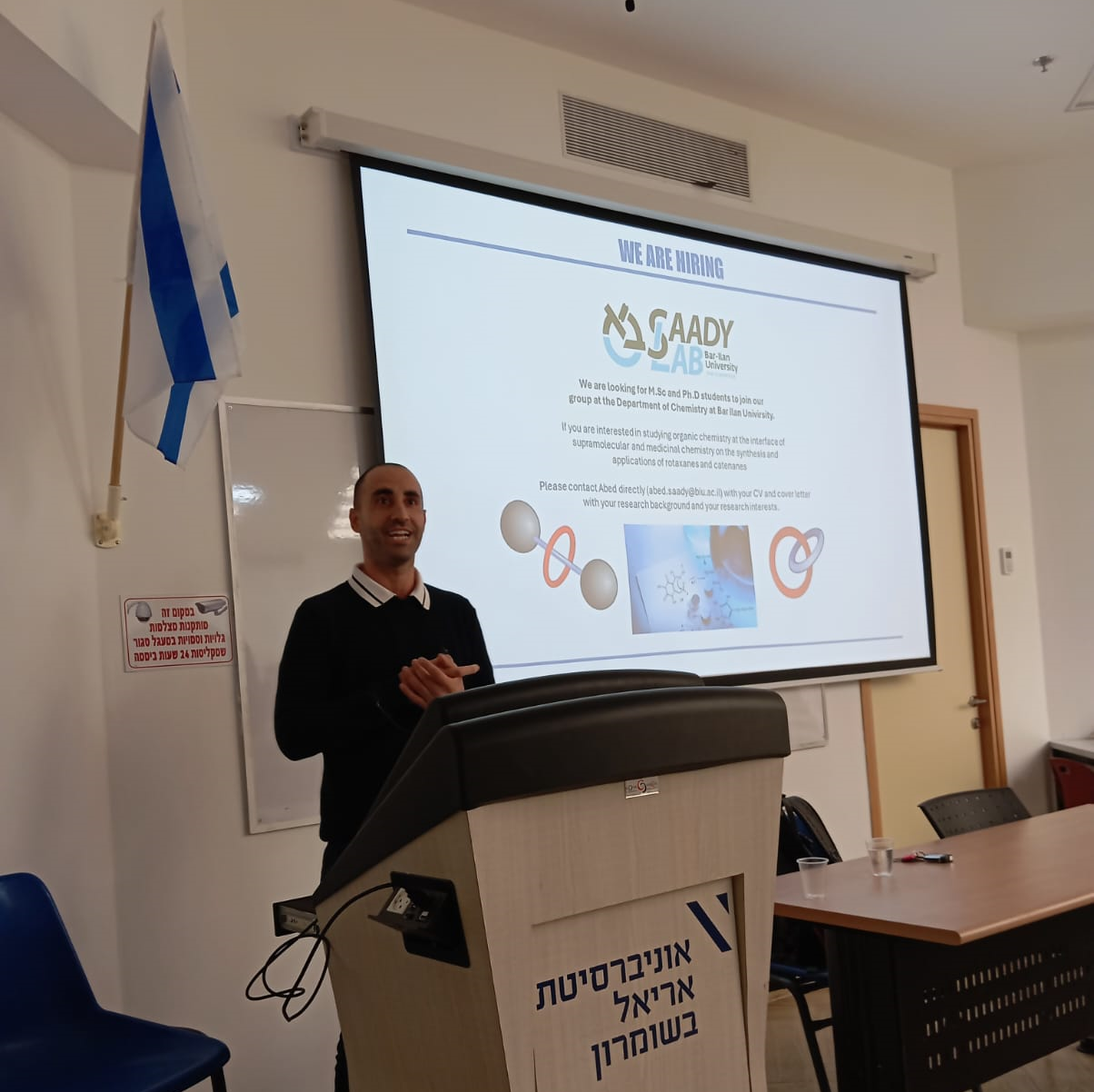 September 2024: Abed joined the Academix meeting organized by The Israel Young Academy and delivered a talk about the synthesis and applications of mechanically interlocked molecules.