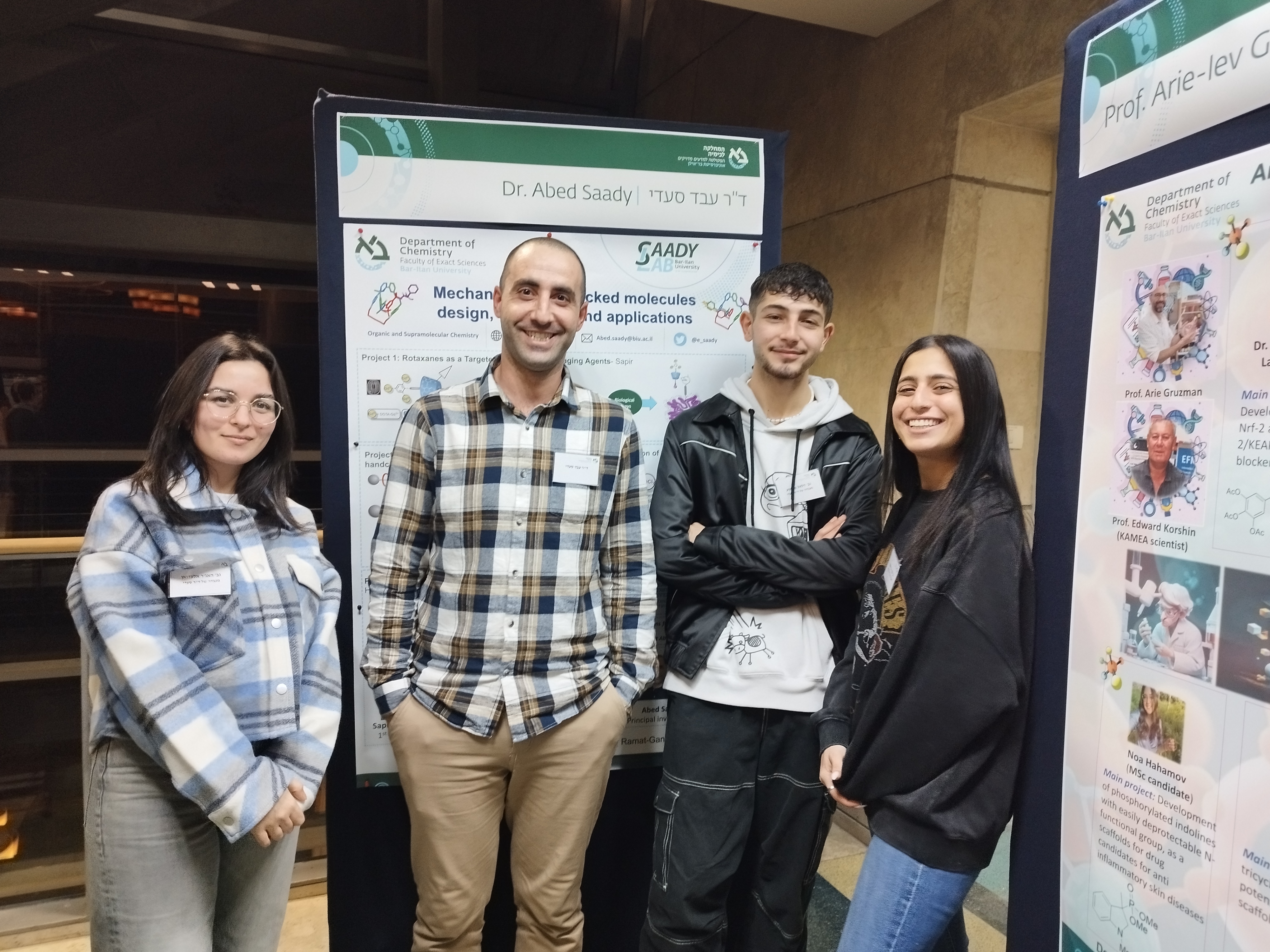 February 2025: Abed gave an invited lecture at the 2025 Israel Chemical Society meeting, presented the platform approach to mechanically caged molecules.