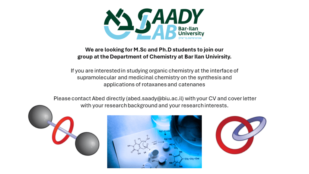If you are interested in joining the Saady Group as a PhD or postdoctoral fellow please contact Abed directly (abed.saady@biu.ac.il) with your CV and cover letter in which you describe your research background and your research interest.